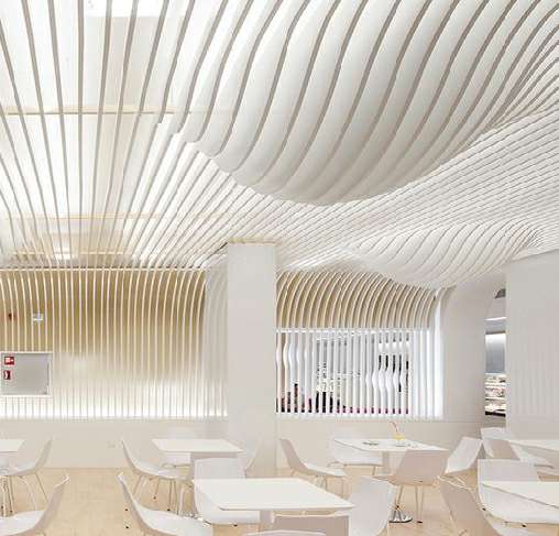 • beat·365(中国)官方网站金属吊顶系统可为商业空间提供专业的顶面解决方案,可满足现代商业空间对室内环境不同的功能要求。beat·365(中国)官方网站天花板具有低反光度以及隔热保温性能,产品通常为哑光,有效降低照明能耗和空调负荷,节约日常运行成本。
